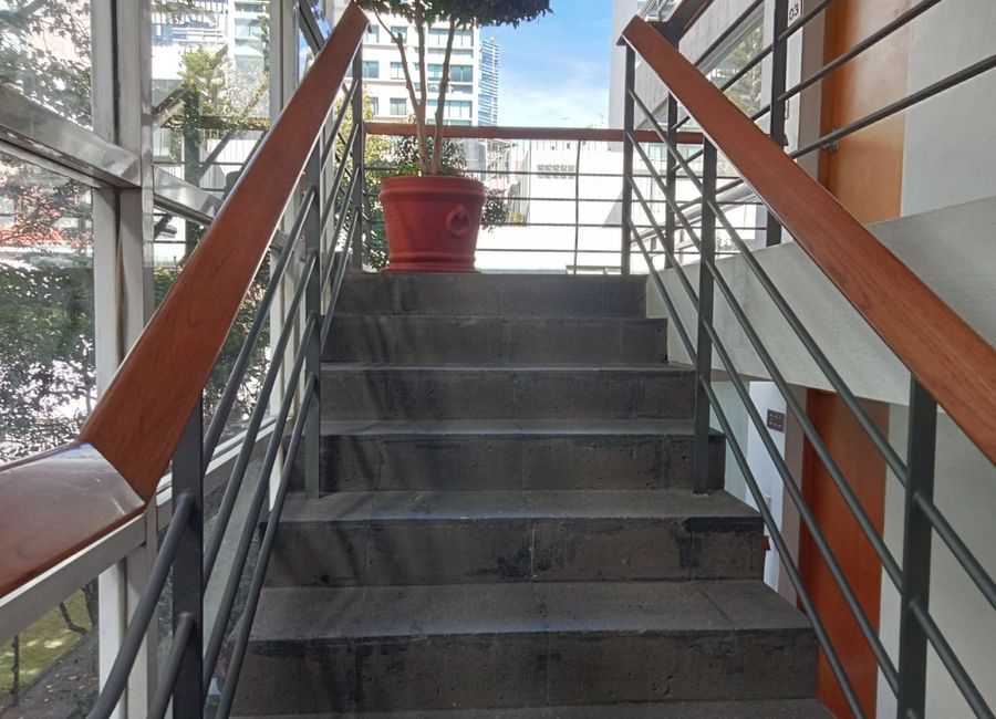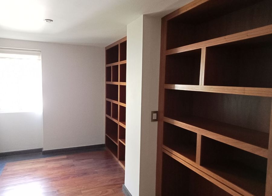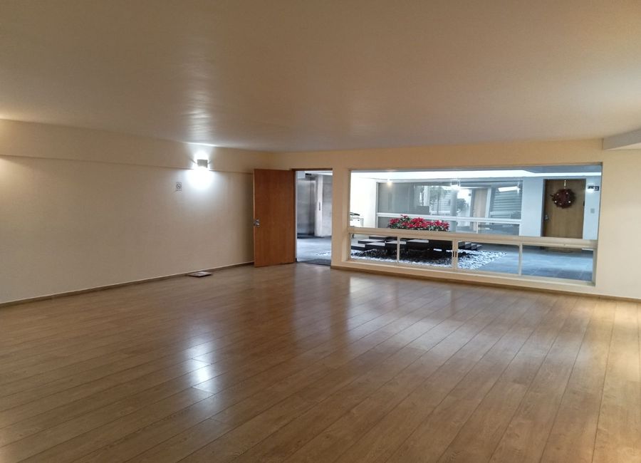 Hermoso departamento con amplios espacios y excelentes acabados, en una de las mejores zonas de la Ciudad de México, vestíbulo, estancia con pisos de madera, linda cocina integral con alacena, lavandería, 2 recámaras, la principal con vestidor y baño otro baño completo, medio baño de visitas, estudio, vista agradable, muy iluminado, elevador, dos cajones de estacionamiento, bodega amplia, salón de fiestas con cocina, área de recreo y juegos para carne asada, cisterna y tinacos en azotea vigilancia la veinticuatro horas,